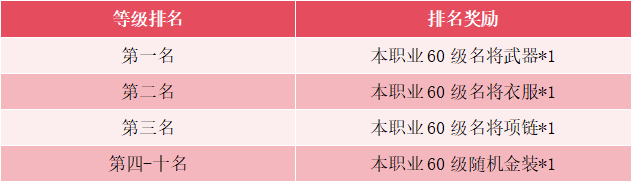 活动五、60级等级冲榜!