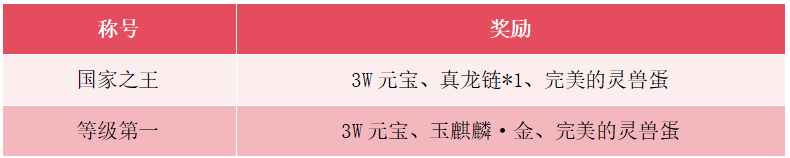 2、自开服时间起,到活动结束止,服务器每个国家等级排名第一的玩家获得等级第一排名奖励,联系客服柚子(QQ:99025627)领取等级第一奖励!