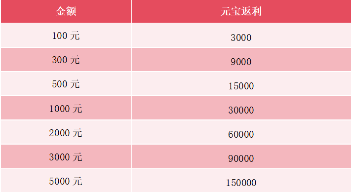 活动十二、元宝超值返利30%!