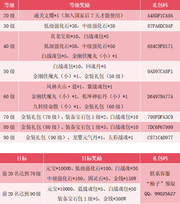 【活动规则】:活动期间内,玩家角色等级达到对应等级即可领取对应等级奖励,奖励每角色仅能领取一次。