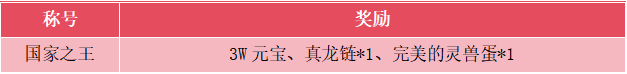 1、在新服4月18日、4月25日会有两次国王争王战,成功拿下国家之王的家族长,可在活动结束后,凭截图联系客服柚子(QQ:99025627)核实后领取国家之王奖励!