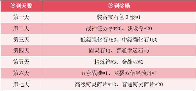 【活动内容】:踏入新服的第一天,你就是这片新大陆的开拓者!为了庆祝你的到来,我们特别准备七日签到活动,即可领取每日签到好礼!奖励将会以邮件的形式发放到游戏邮箱内,有问题可联系客服柚子(99025627)咨询。