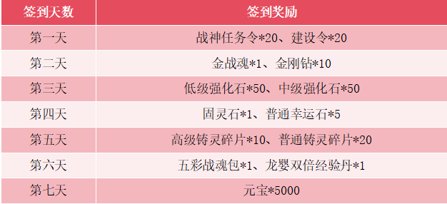 【活动内容】:踏入新服的第一天,你就是这片新大陆的开拓者!为了庆祝你的到来,我们特别准备七日签到活动,即可领取每日签到好礼!奖励将会以邮件的形式发放到游戏邮箱内,有问题可联系客服柚子(99025627)咨询。