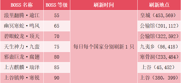 【BOSS刷新地点】:11月30日、12月07日不刷新;