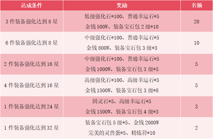 1、活动期间,玩家角色装备强化达到对应条件,凭截图提交客服柚子(QQ:99025627)核实后将发放对应奖励。