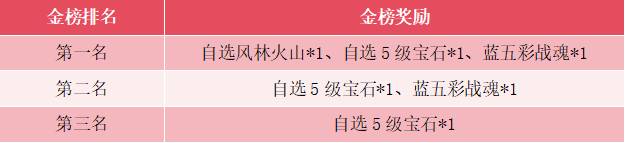 【活动规则】:活动期间内,各位战神单账号充值满2500元即可登陆战神金榜,前三名的玩家更是可以享受金榜奖励。活动结束时,充值满2500元但未上榜的玩家可领取“装备宝石包5级*1”。